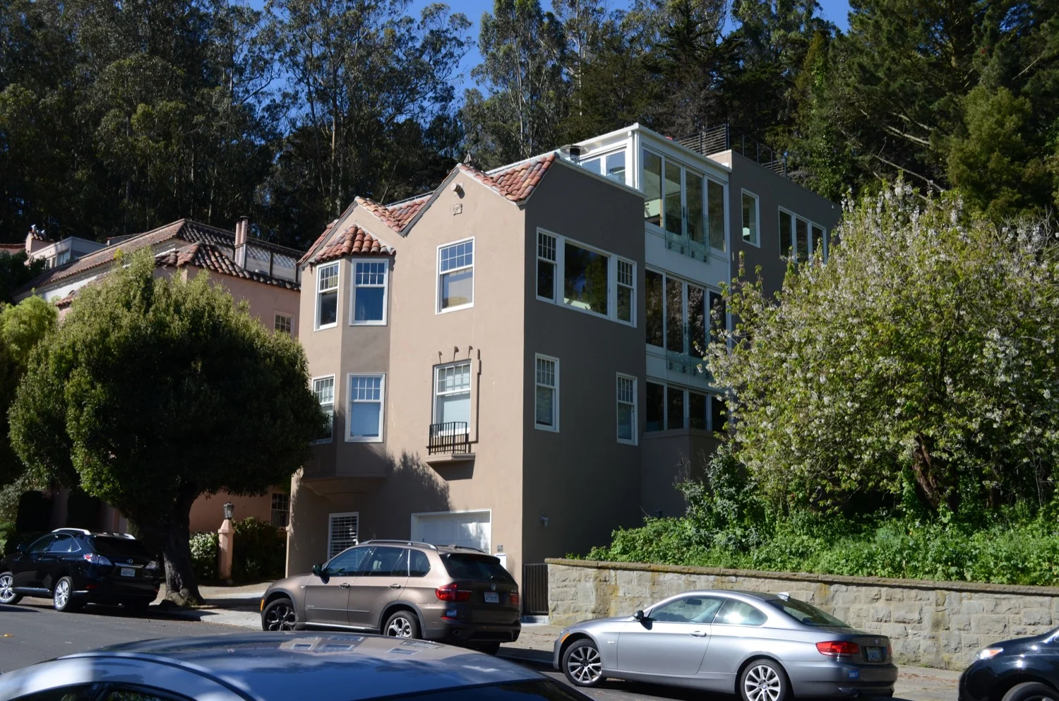 A full scope renovation of this San Francisco home renews the house and strengthens its connection to a wonderfully redesigned garden. A gracious new relationship is introduced between the living room, dining room, kitchen, and the rear yard which promotes a modern way of living. New amenities such as a new outdoor kitchen, a spa bathroom, a media den, and a small elevator that serves all three floors, add to the livability of this house originally built in 1940.